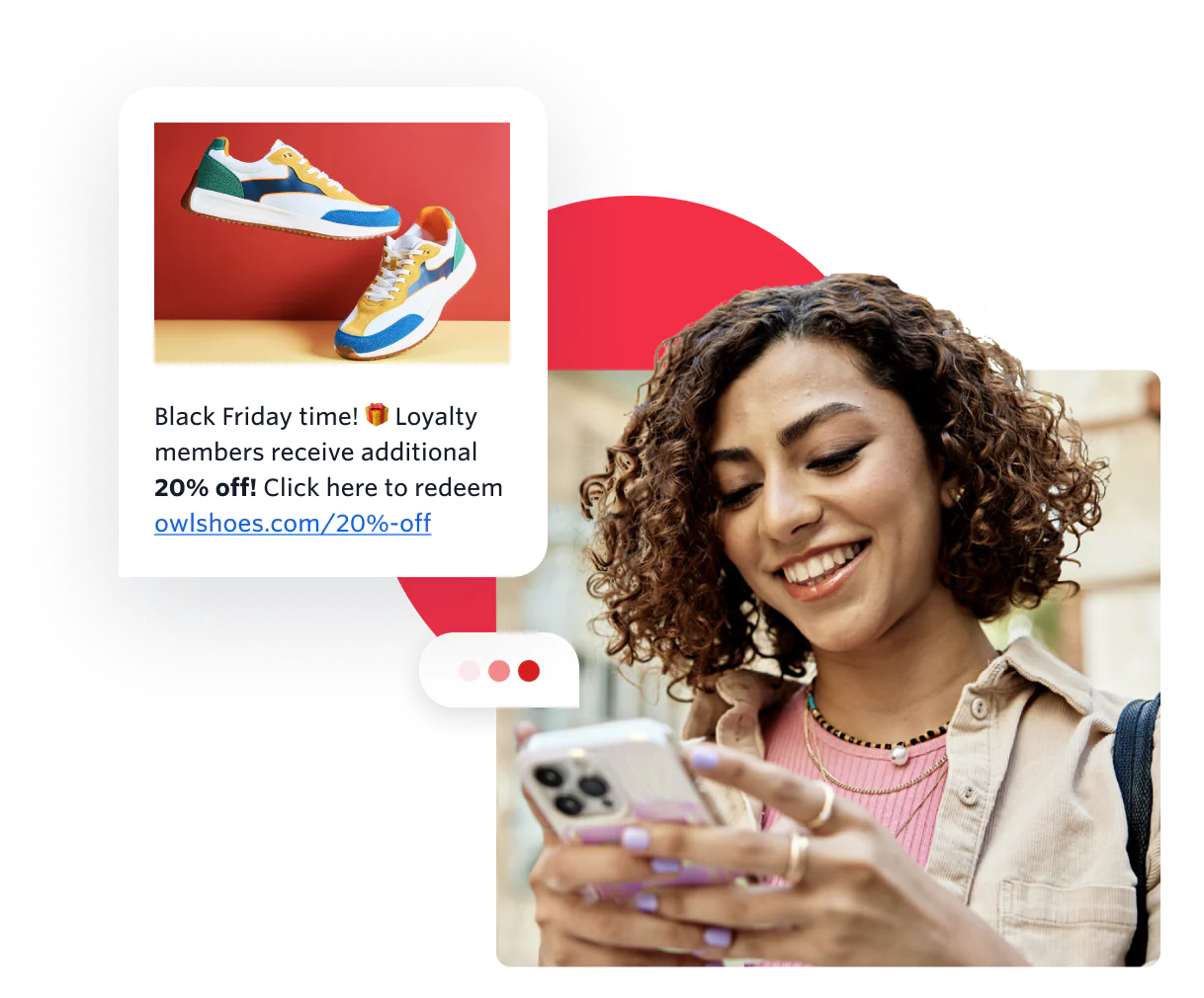 Deliver the right message on the right channel SMS (or text message) marketing is a way to reach customers with messages that are tailored to them. It can be as targeted as 100 hyper-personalized messages to your most loyal customers or as expansive as millions of notifications about your annual sale. With Twilio, you have unlimited flexibility to create the ideal text message marketing experience on the channels your customers use: SMS, MMS, RCS, WhatsApp, or Facebook Messenger.